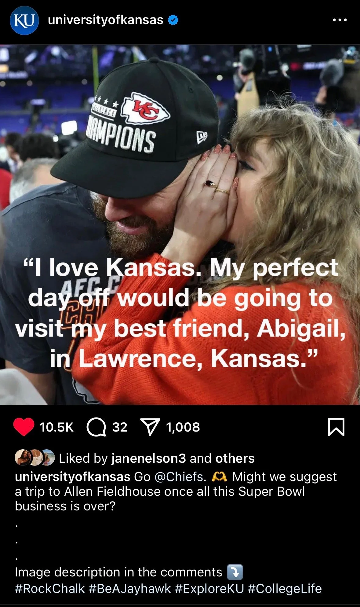 Caption: It’s never just “because” #KU #RockChalk #Jayhawk